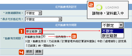 故在會員需知或是購物需知中加註提醒會員,以免造成客訴。若客訴狀況嚴重一定要歸還可用紅利時,您可在後台將該筆訂單處理情形先改為「未處理」再改為「已結案」,則點數便可使用,使用期限依你更改當天為起始日。(因為此動作可能會影響報表及銷售排行,故非必要請勿依此操作) |